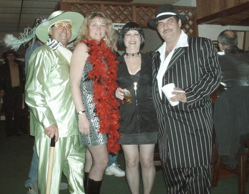 Above is a photo of two couples, two men with two women between them. They are all dolled up as their understanding of what pimps and hos look like. And a fun time was had by all, except, of course, by women trapped by PIMPs and abused by WIMPs (see glossary to the right). Then it's not just fun and games.